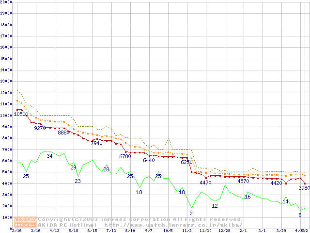 Celeron 1.10A GHz FC-PGA2 リテールパッケージの価格推移