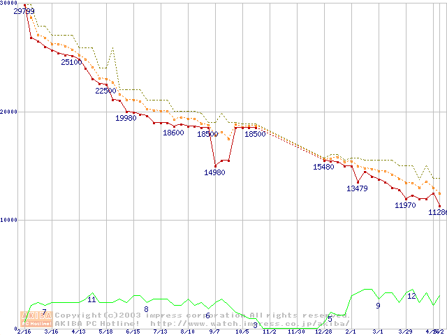 WD Caviar (5400rpm,UltraATA/100,2MB)の最安値推移