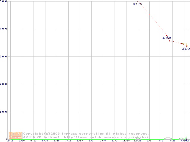 PC2700(DDR333) DDR SDRAM DIMM ECC対応 Registeredタイプの最安値推移