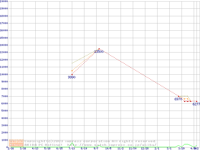 PC2700(DDR333) DDR SDRAM DIMM ECC対応 Registeredタイプの最安値推移