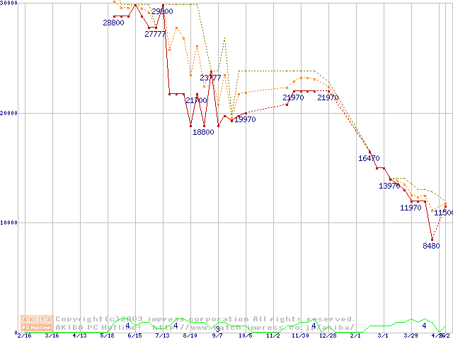 PC2700(DDR333) DDR SDRAM DIMM ECC対応 Registeredタイプの最安値推移