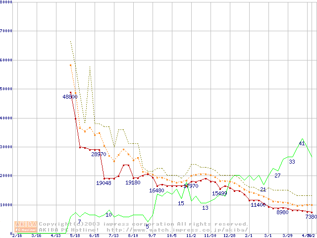 PC3200(DDR400) DDR SDRAM DIMMの最安値推移