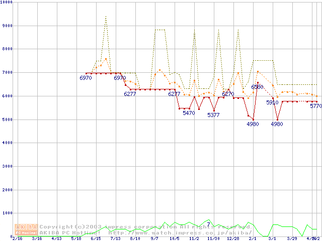 PC800-40 DRDRAM RIMM ECC対応の最安値推移