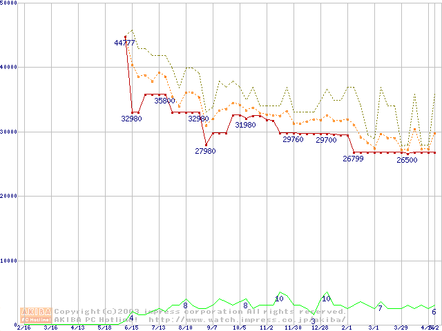 PC800-40 DRDRAM RIMM ECC対応の最安値推移