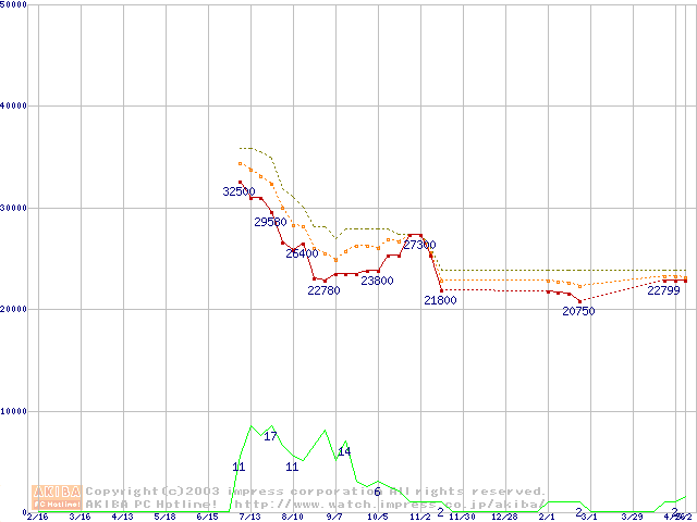 Athlon MP 2100+ (1.73GHz) リテールパッケージの価格推移