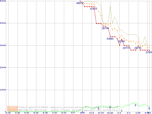 PC1066 DRDRAM RIMM4200(32bit)の最安値推移