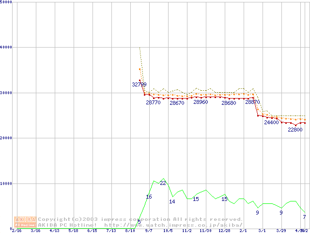 Socket 478 (micro-PGA,FSB 400MHz,L2 512KB,Northwood)の最安値推移