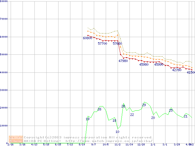 Pentium 4 2.80GHz リテールパッケージの価格推移