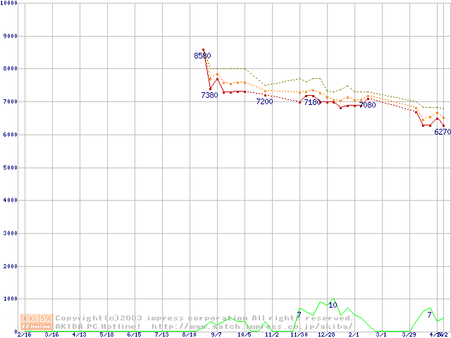 Fireball 3 (5400rpm,UltraATA/133,2MB,BB)の最安値推移
