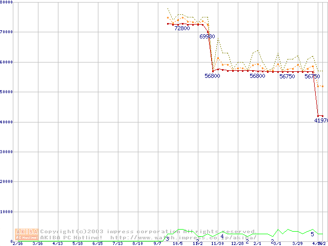 Socket 603 (micro-PGA,FSB 400MHz,L2 512KB,Prestonia)の最安値推移