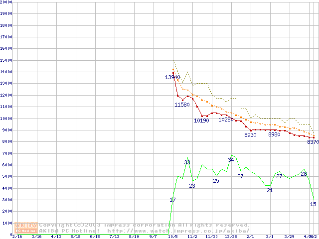Deskstar 180GXP (7200rpm,2MB,UltraATA/100,FDB)の最安値推移