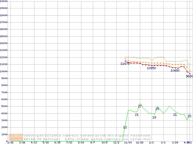 Socket 478 (micro-PGA,FSB 400MHz,L2 128KB,Northwood)の最安値推移