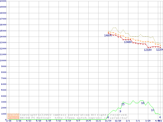 MHSシリーズ (9.5mm,4200rpm,UltraATA/100,2MB,FDB,30GB/Platter,FDB)の最安値推移