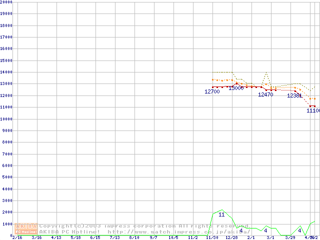 MKシリーズ (9.5mm,4200rpm,2MB,FDB,30GB/Platter)の最安値推移