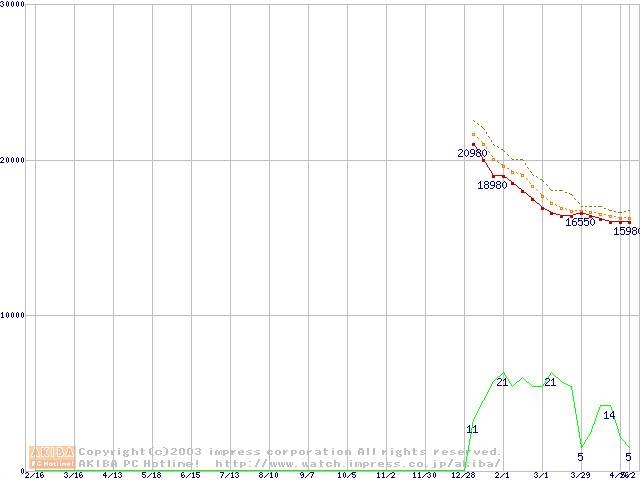 HDD主要製品(最安値1万5千円~2万円未満)の最安値推移