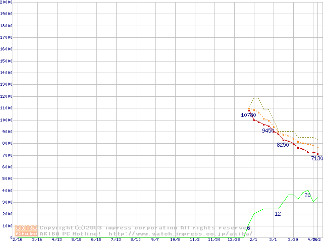 Barracuda 7200.7 (7200rpm,UltraATA/100,2MB,80GB/Platter,FDB)の最安値推移