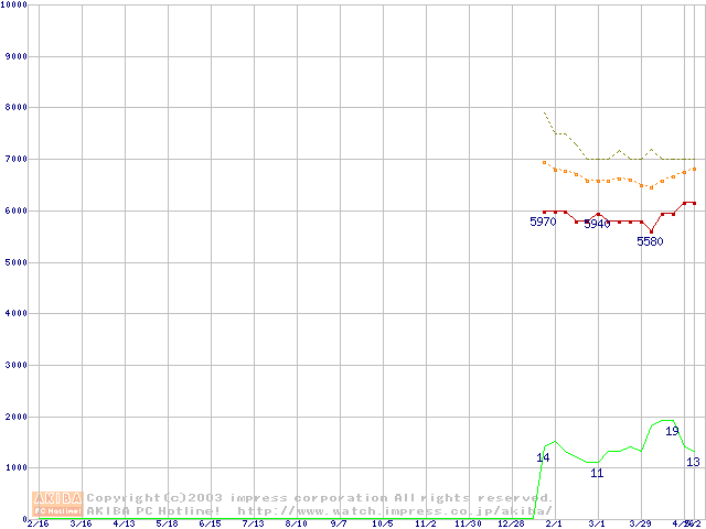 Socket A (OPGA,FSB 266MHz,L2 256KB,Thoroughbred)の最安値推移