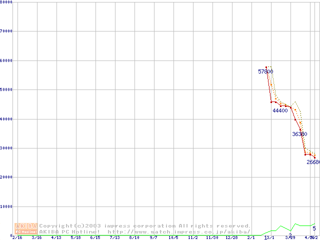Socket A (OPGA,FSB 333MHz,L2 512KB,Barton)の最安値推移
