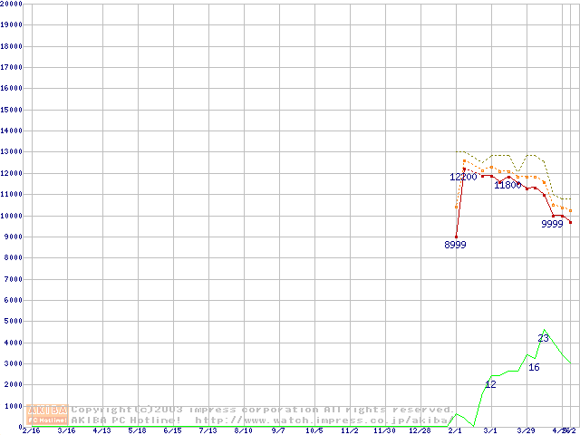 Socket A (OPGA,FSB 266MHz,L2 256KB,Thoroughbred)の最安値推移