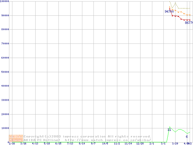 Xeon 3.06GHz(FSB533) リテールパッケージの価格推移