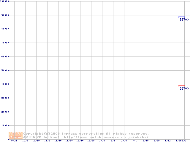 | [↓次グラフ]: | Socket A (OPGA,FSB 266MHz,L2 256KB,Thoroughbred)の最安値推移 |