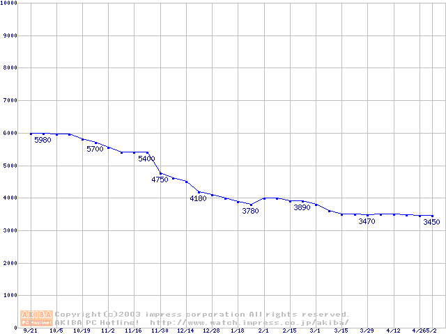 | [↓次グラフ]: | Socket A (PGA,FSB 200MHz,L2 64KB,Morgan)の最安値推移 |