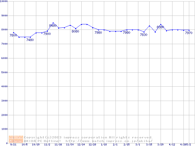| [↑前グラフ]: | Europa (7200rpm,2MB,FDB,UltraATA/100)の最安値推移 |