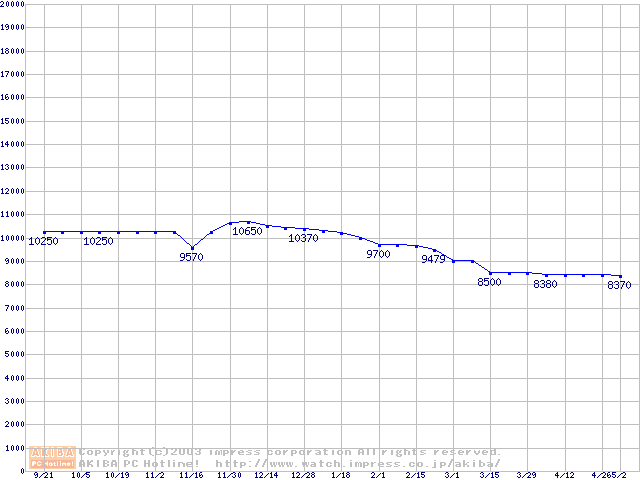 | [↓次グラフ]: | Barracuda 5400.1 (5400rpm,UltraATA/100,2MB,FDB)の最安値推移 |