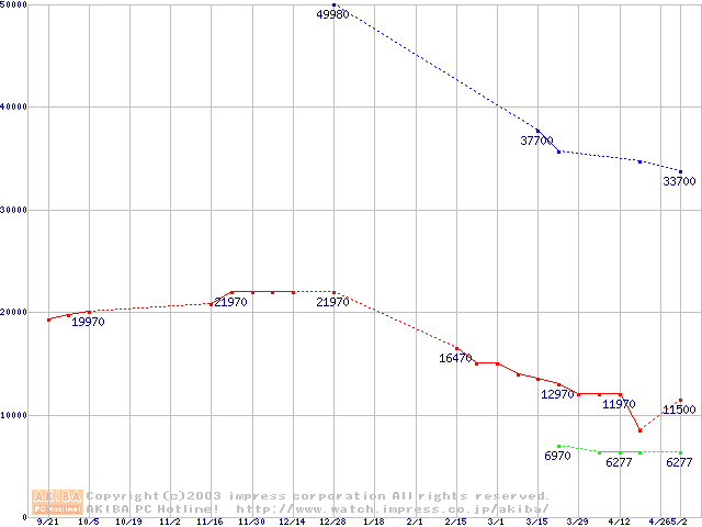 | [↓次グラフ]: | PC3200(DDR400) DDR SDRAM DIMMの最安値推移 |