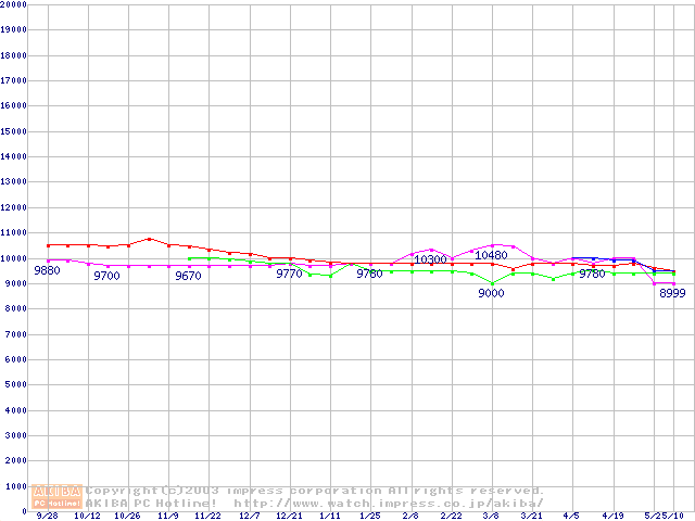 | [↑前グラフ]: | 2.5インチHDD主要製品の最安値推移 |