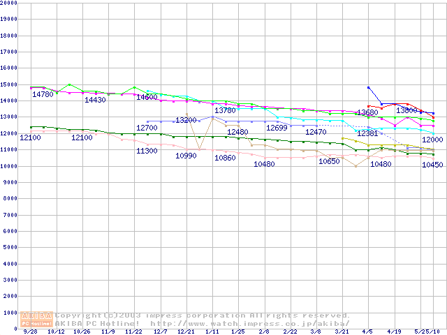| [↓次グラフ]: | 2.5インチHDD主要製品(最安値1万5千円~2万円未満)の最安値推移 |