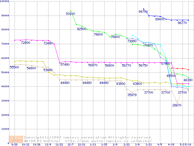 CPU主要製品(最安値2万円~3万円未満)の最安値推移