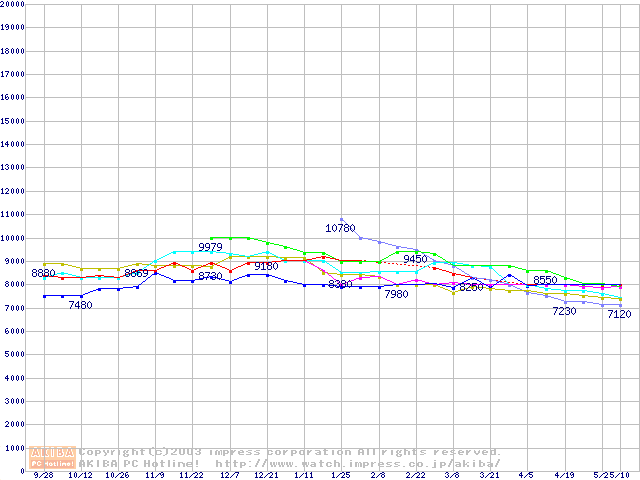 | [↓次グラフ]: | HDD 60GB~80GB未満(7200rpmクラス)の最安値推移 |