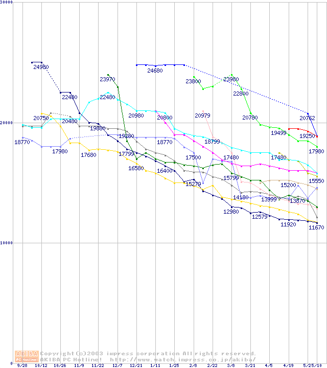 HDD 160~200GB未満(7200rpmクラス)の最安値推移