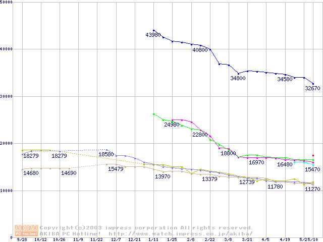 | [↓次グラフ]: | HDD 30GB~40GB未満(7200rpmクラス)の最安値推移 |