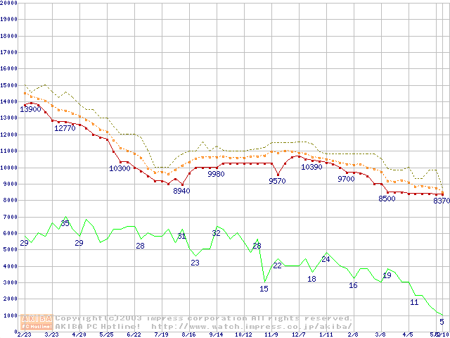 HDD主要製品の最安値推移