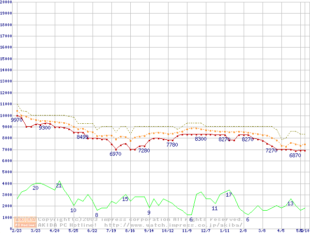 WD Protege (5400rpm,UltraATA/100)の最安値推移