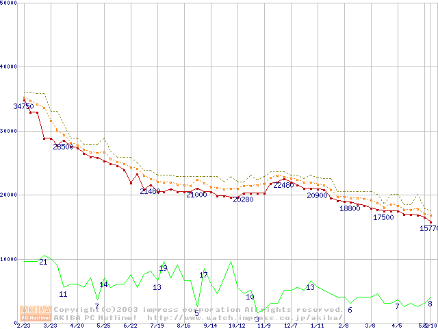 WD Caviar(Special Edition) (7200rpm,UltraATA/100,8MB)の最安値推移