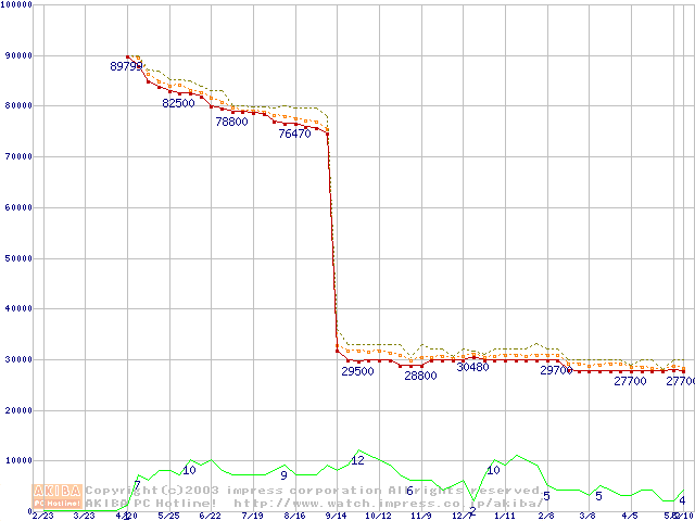 Socket 603 (micro-PGA,FSB 400MHz,L2 512KB,Prestonia)の最安値推移