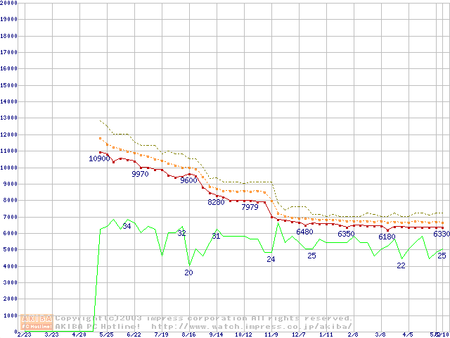 Socket 478 (micro-PGA,FSB 400MHz,L2 128KB,Willamette)の最安値推移