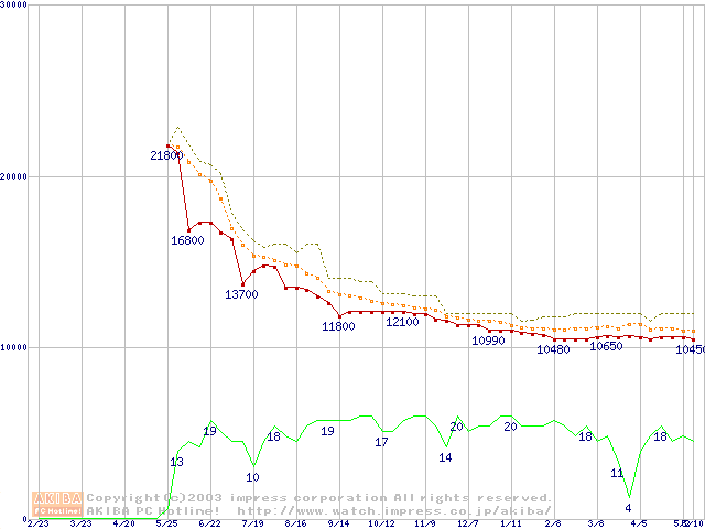 Travelstar 40GNX IC25N020ATCS05 20GBの価格推移