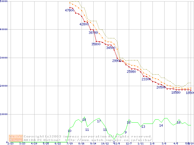MKシリーズ (9.5mm,4200rpm,2MB,FDB,30GB/Platter)の最安値推移
