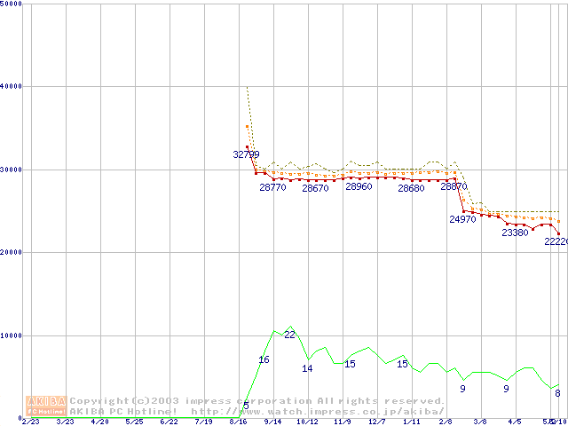 Socket 478 (micro-PGA,FSB 400MHz,L2 512KB,Northwood)の最安値推移