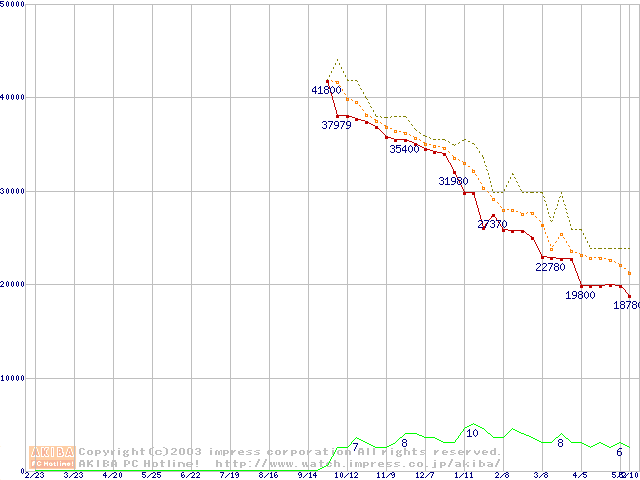 WD Caviar (7200rpm,UltraATA/100,2MB)の最安値推移