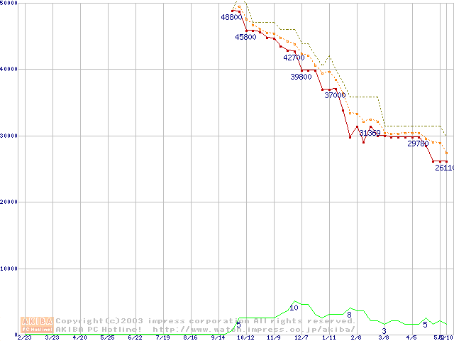 WD Caviar (7200rpm,UltraATA/100,2MB)の最安値推移