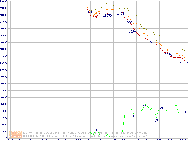 DiamondMax 16 (5400rpm,UltraATA/133,2MB,80GB/Platter,FDB)の最安値推移