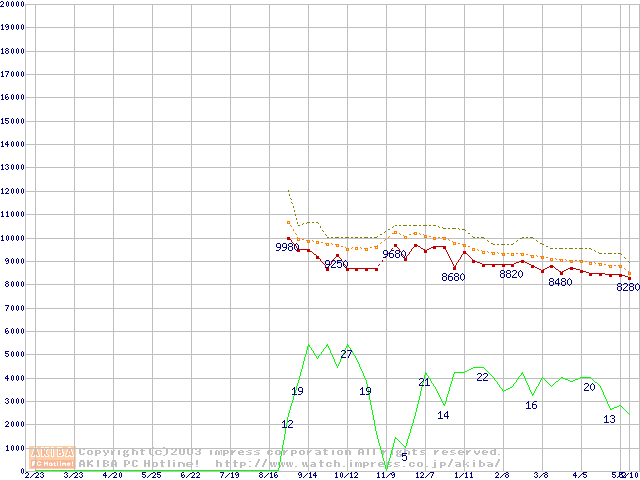 DiamondMax 16 (5400rpm,UltraATA/133,2MB,80GB/Platter,FDB)の最安値推移