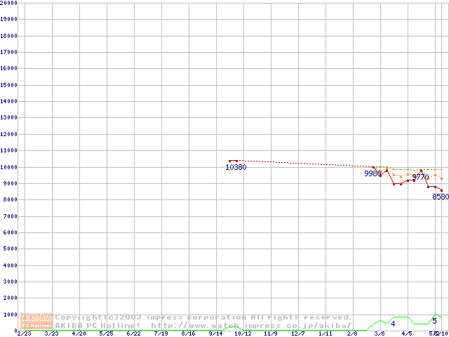 SpinPoint V60 (5400rpm,UltraATA/100,2MB)の最安値推移