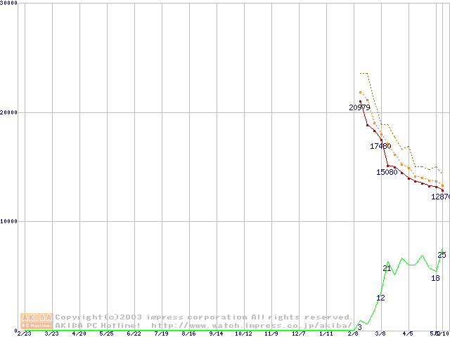 Deskstar 180GXP (7200rpm,8MB,UltraATA/100,FDB)の最安値推移