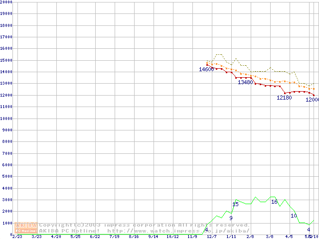 MHSシリーズ (9.5mm,4200rpm,UltraATA/100,2MB,FDB,30GB/Platter,FDB)の最安値推移